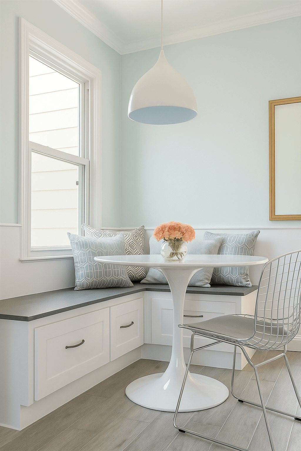 Un bleu adouci par une pointe de gris, idéal pour créer une ambiance scandinave ou minimaliste. Parfait dans un salon lumineux ou une chambre parentale, il inspire calme et sérénité.